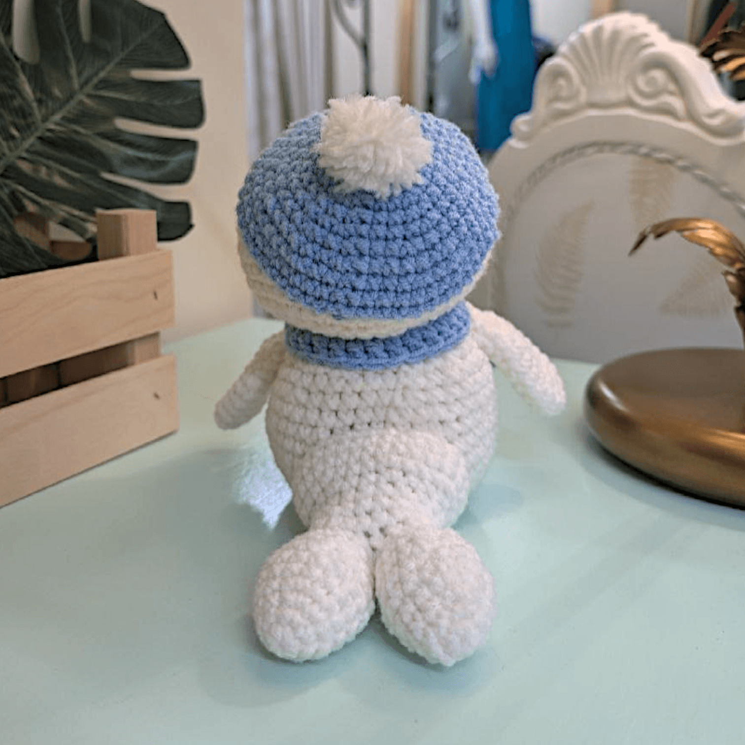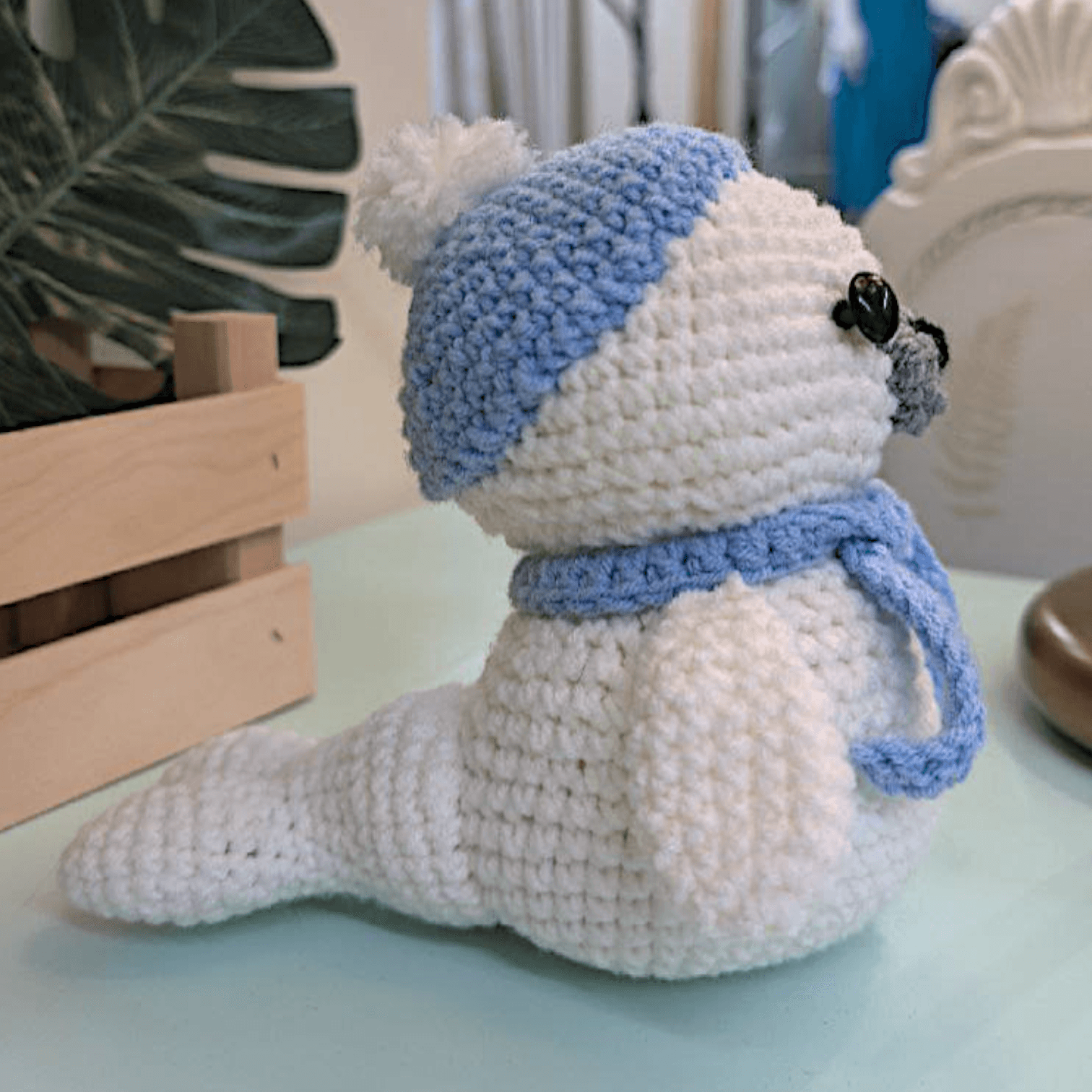 Questa foca amigurumi all’uncinetto è realizzata a mano con dettagli curati e proporzioni tenere che richiamano l’atmosfera delle coste invernali. Con il suo sguardo simpatico, piccole pinne e il cappellino con pon-pon (e la sua sciarpa, se vuoi includerla!), è un oggetto irresistibile sia come peluche che come decorazione.