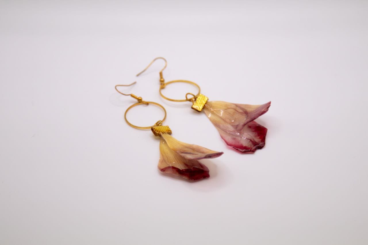 Orecchini in acciaio e petali veri laccati in resina